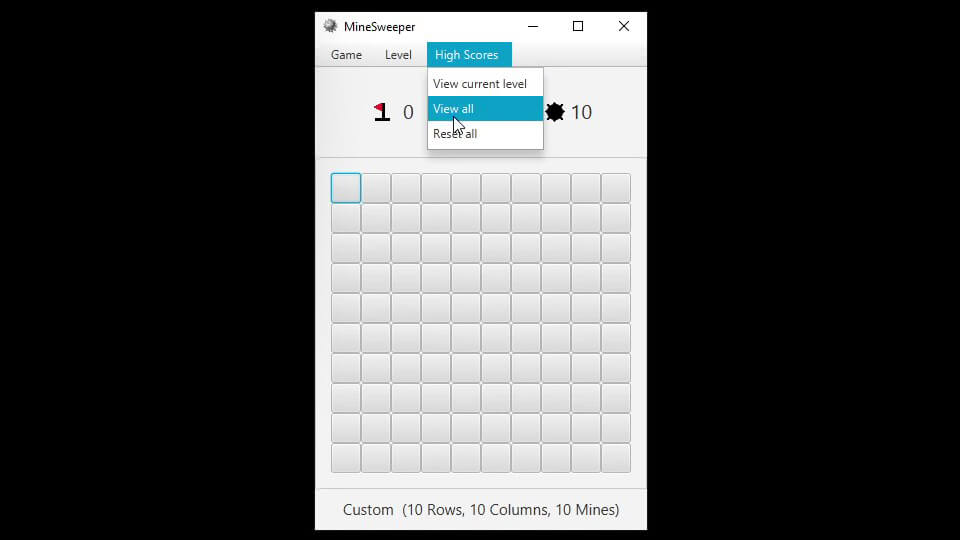 A minesweeper game, made using Java Includes saving of settings and highscores, preset and custom level settings. It was created using the Model-View-Controller design pattern. Created for my Further Programming module